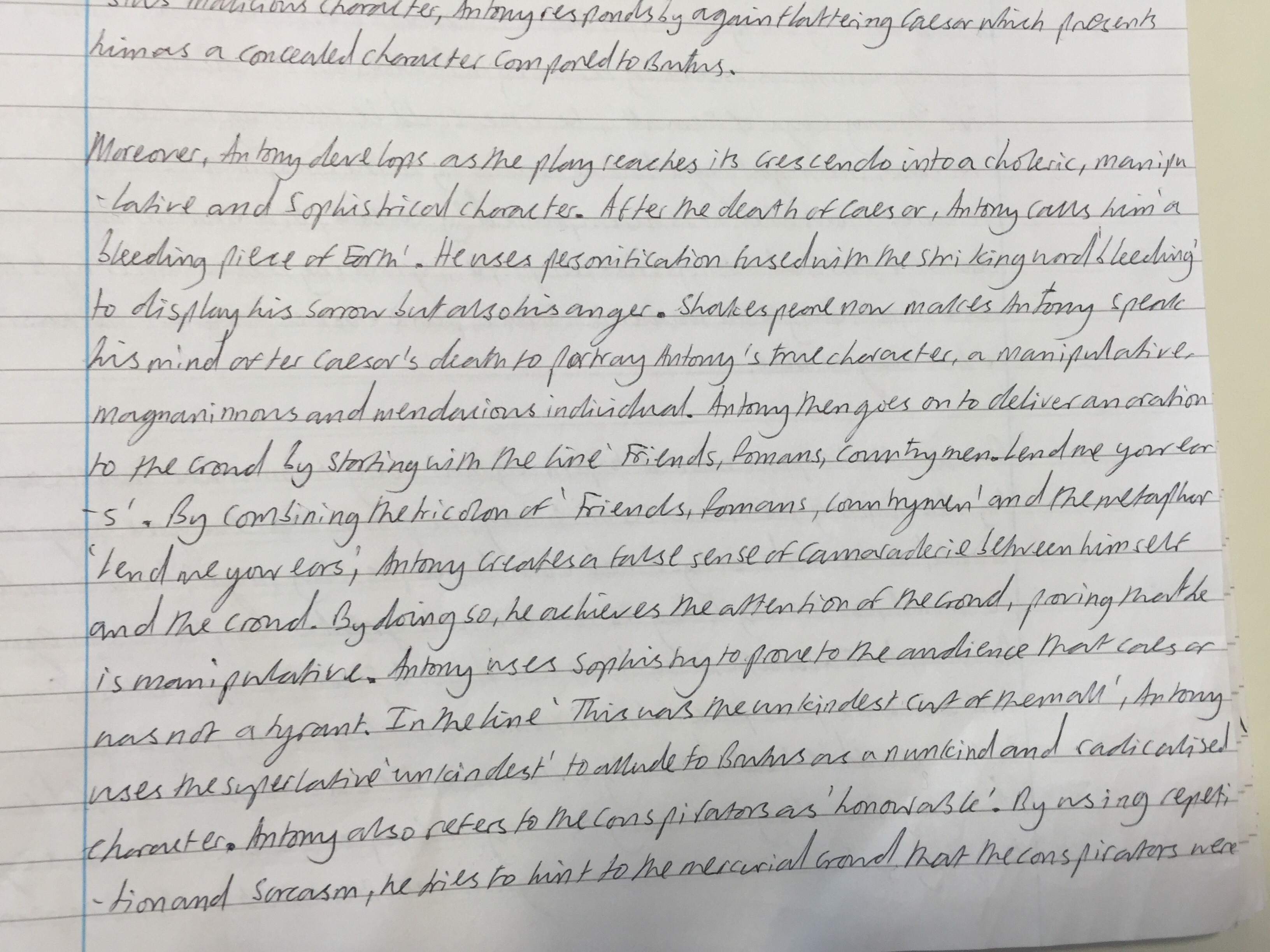 Here is a paragraph from a year 7 exam, done on Julius Caesar and entirely from memory.